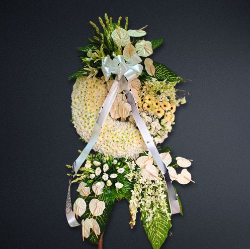 Enduring elegance symbolized by calla lilies and green foliage, offering a peaceful expression of respect and lasting memory.